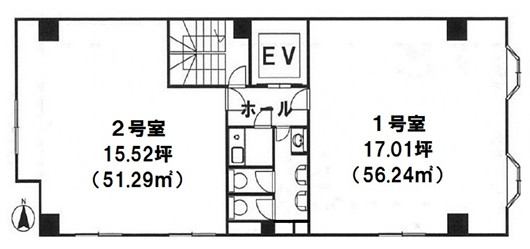 正方形の間取りで、エレベーター降りてすぐの使いやすいオフィスです。