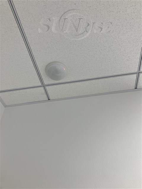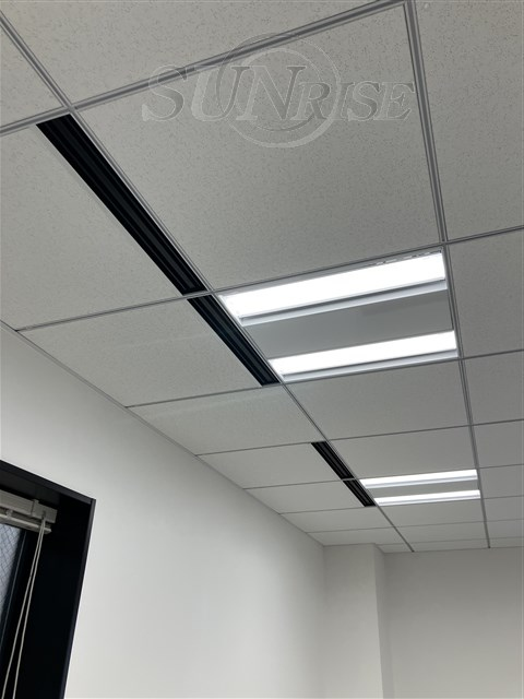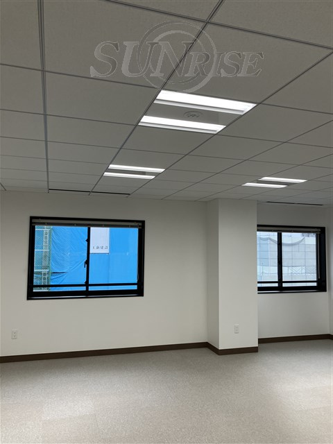窓面が広く明るいオフィス。システム天井で自由なレイアウトを実現。