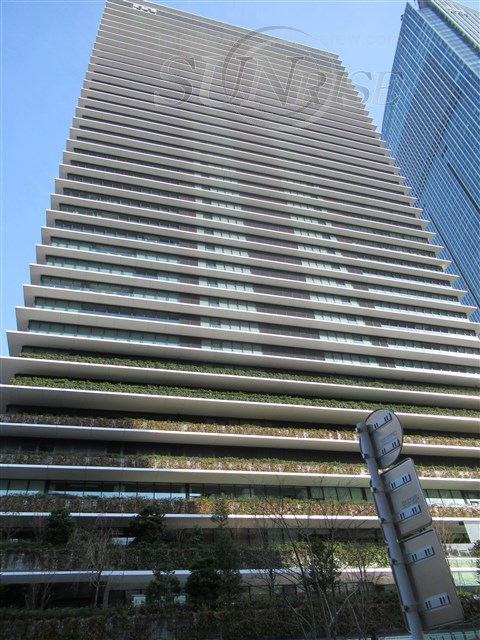 正面に虎ノ門ヒルズを望む窓面が広く明るい室内。EV不停止機能。