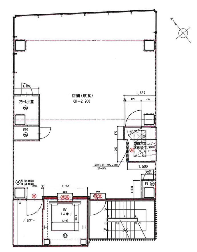 | 特色 | 前テナント:((未入居)、天井高:2,700mm、エレベーター、EV不停止機能、機械警備、ワンフロア独立、駅至近、飲食可、スケルトン、ガス使用可、新耐震基準、看板使用料:月/11,000円(税別) |